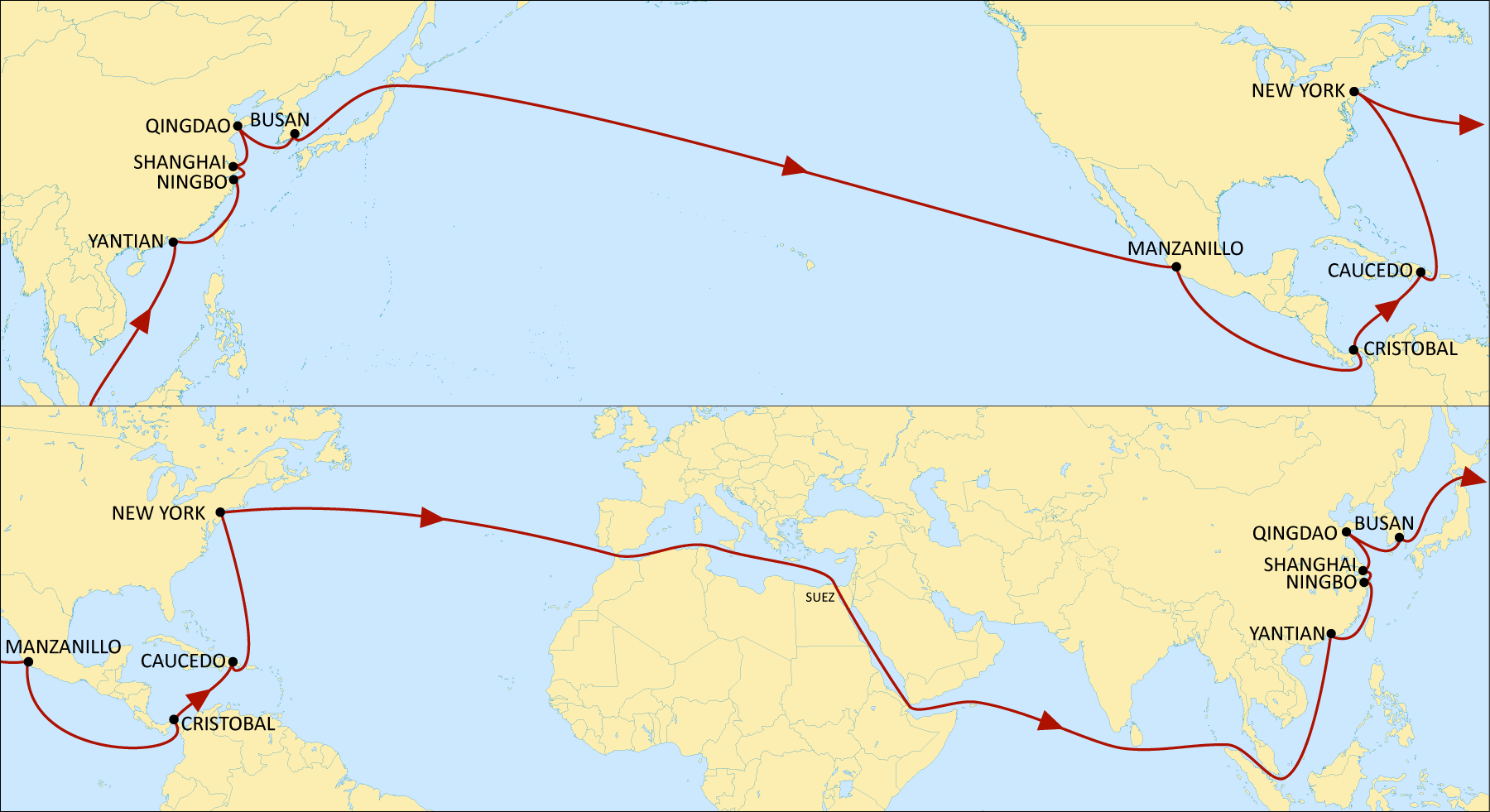 Yantian – Ningbo – Shanghai – Qingdao – Busan – Manzanillo – Cristobal – Caucedo – New York