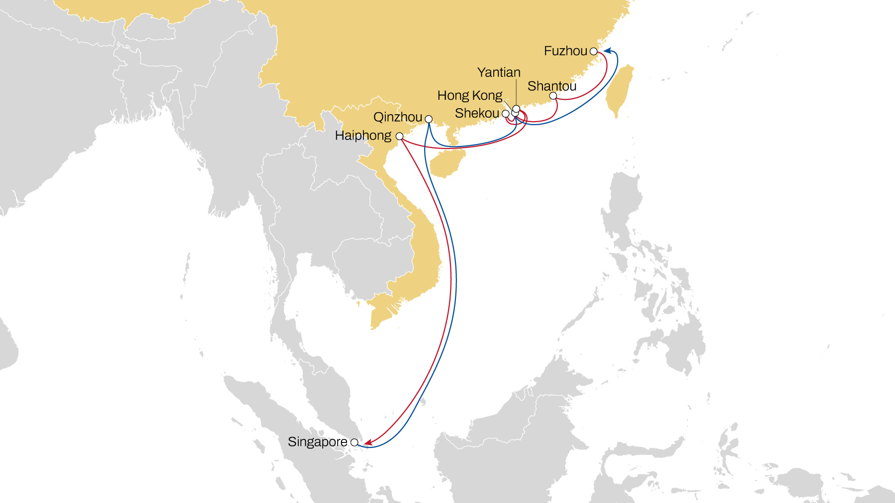 Fuzhou – Shantou – Hong Kong – Shekou – Yantian – Haiphong – Singapore – Qinzhou – Hong Kong – Fuzhou