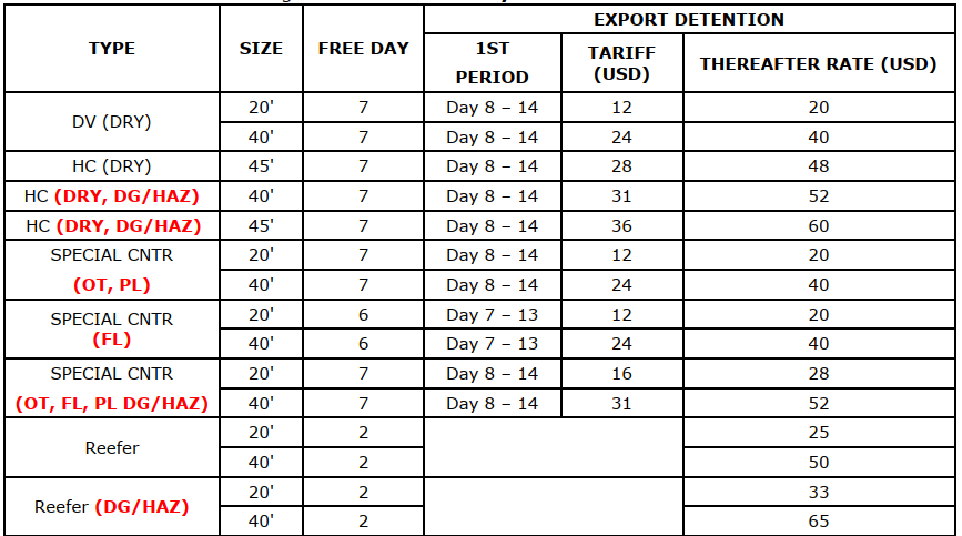 | Seal Fee | USD | 13 | Per Container | Export |