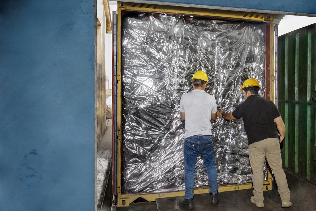Before loading, calcium chloride moisture absorbers are placed inside the liner to actively reduce humidity. This is especially critical for moisture-sensitive commodities such as charcoal, coffee, cocoa, tobacco, and pharmaceuticals, ensuring product integrity from origin to destination.