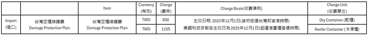 - Equipment (combined container rental) : calculated till ETD.