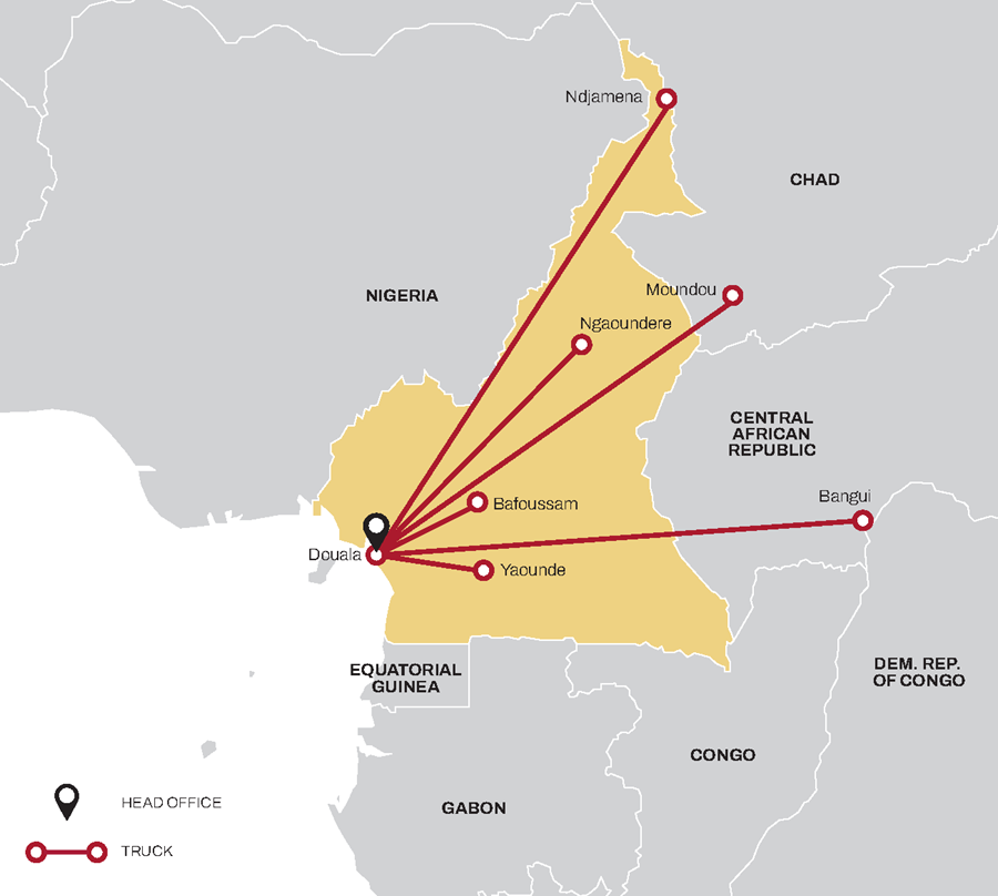 - The new solution connects Douala with inland destinations across Cameroon, Central African Republic (CAR) and Chad.