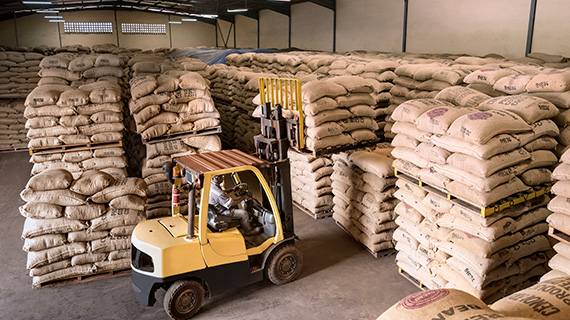 MEDLOG, the logistics arm of MSC Group, has dedicated warehouses to the cocoa as well as trucks equipped with a GPS allowing for real-time localisation, alarm in case of itinerary change and a speed control system to preserve the quality of the beans during transportation.