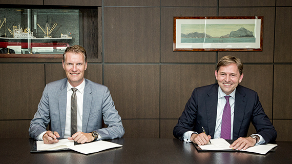 Photo caption: Soren Toft, CEO MSC Mediterranean Shipping Company and Huibert Vigeveno, Downstream Director, Royal Dutch Shell
