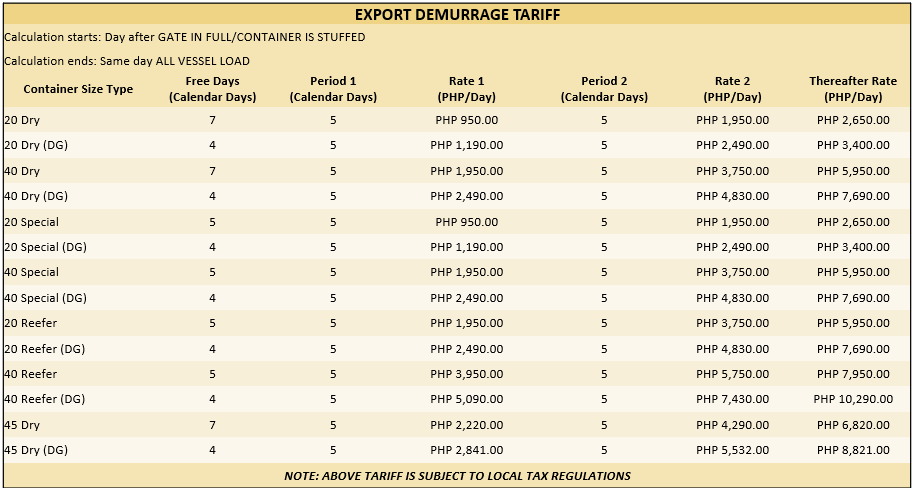 Demurrage Tariff: