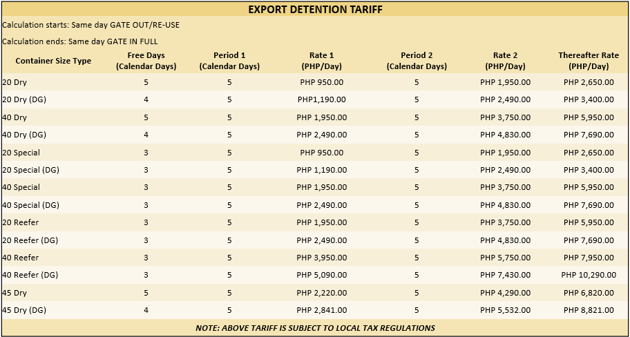 Detention & Demurrage Tariff